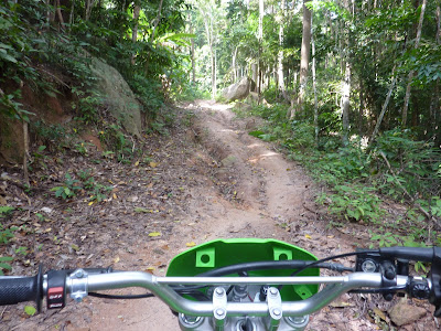 I had seen some sweet dirt bikes for rent the day before so I got up early and got one from a guy on the side of the street for 300 baht and took off not knowing where I was going, but on a mission to find some jungle trails to rip around. The bike was a 2009 KLX140 so it was quite small but actually had some good power and its size made it much more manageable on tight trails. The first dirt road I saw I zipped up with a huge smile on my face just happy to be riding a dirt bike again since it had been so long. The road gradually narrowed until I was off in the jungle on a single track trail just loving life.